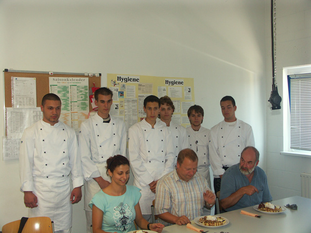 Így 2006. szeptember 2-án elindultunk a nagy kaland: a németországi Jéna felé. Partnerintézményünk a jénai Állami Szakképzési Iskolacentrum egy egyhetes beilleszkedést elősegítő programmal fogadta szakácsifjoncainkat, akik különböző órákon vettek részt a német diákokkal együtt.